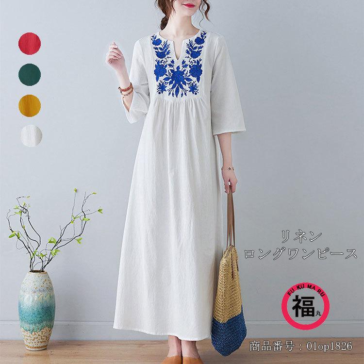 ワンピース ロング丈 マキシワンピース 夏 夏ワンピ レディース フレア袖 刺繍 無地 体型カバー ゆったり スキッパーカラー カジュアル 着痩せ 30代 40代 01op16 Wxl 福丸 通販 Yahoo ショッピング
